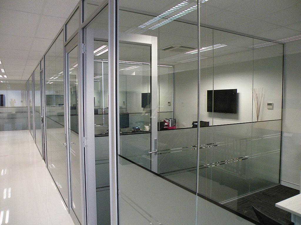 Противопожарные перегородки с оконным блоком могут изготавливаться как в полностью остекленном варианте, так и в частично остекленном исполнении. Основное предназначение таких конструкций — это разделение общего помещения на несколько отдельных рабочих зон. При этом преследуется несколько целей: