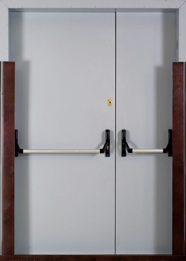 От качества заполнителя зависит, насколько эффективно преграда будет препятствовать распространению высоких температур. Материал должен быть негорючим и стойким к температурным воздействиям. В комплектацию противопожарной алюминиевой двери также входят уплотнители, ручки, замки и иные элементы фурнитуры. Дополнительные фурнитурные детали: доводчики, отбойные пластины, пороги разных типов.